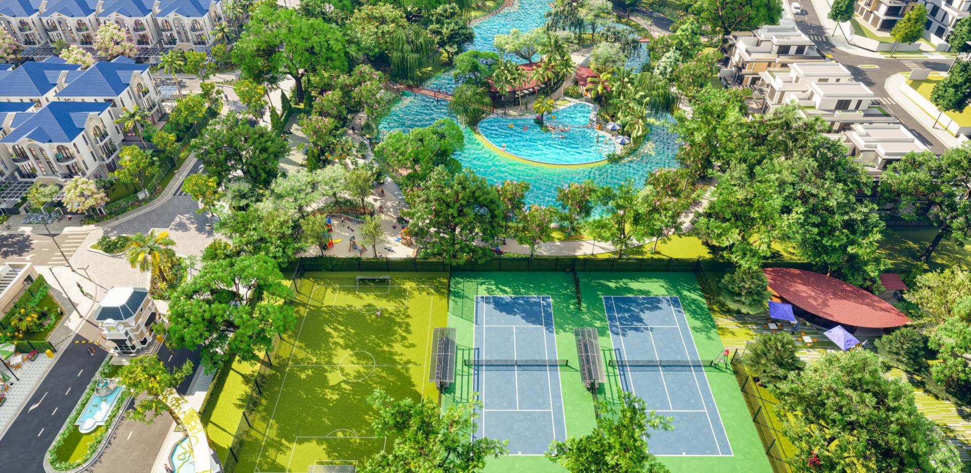 đủ tiện ích, dịch vụ trong bán kính đi bộ và 3 phân khu nhà ở thấp tầng: Hồng Phát, Hồng