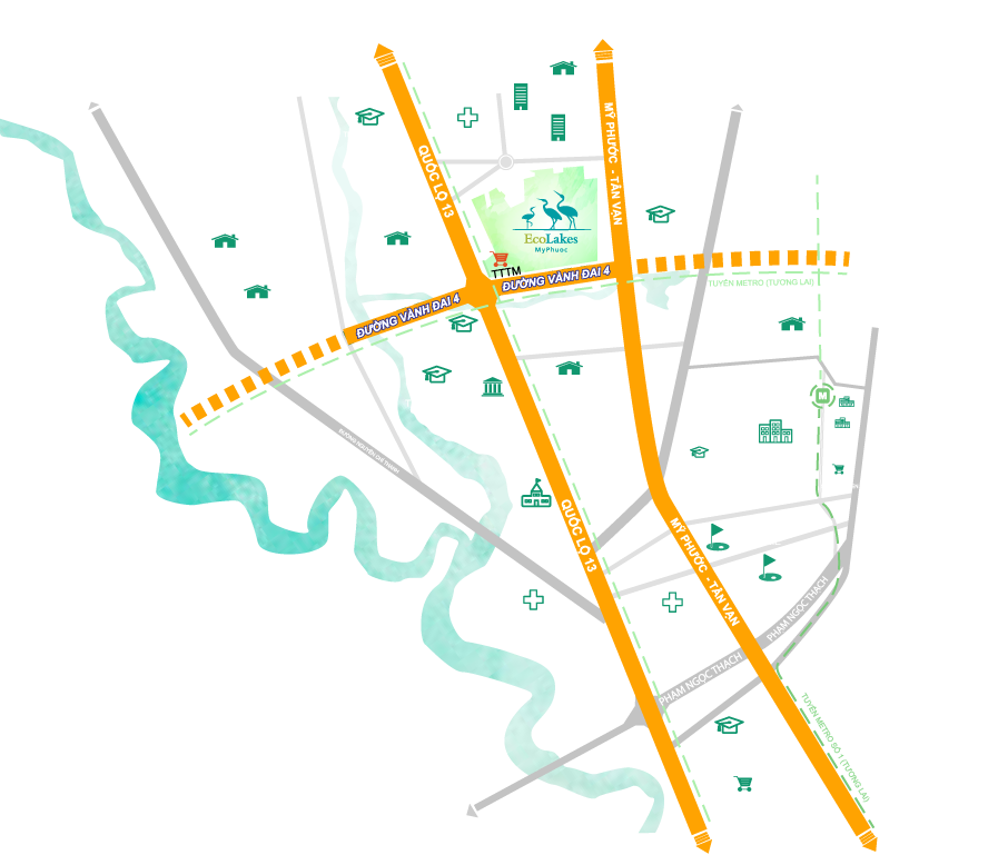Đại đô thị sinh thái EcoLakes Mỹ Phước, do chủ đầu tư SetiaBecamex phát triển, trải rộng